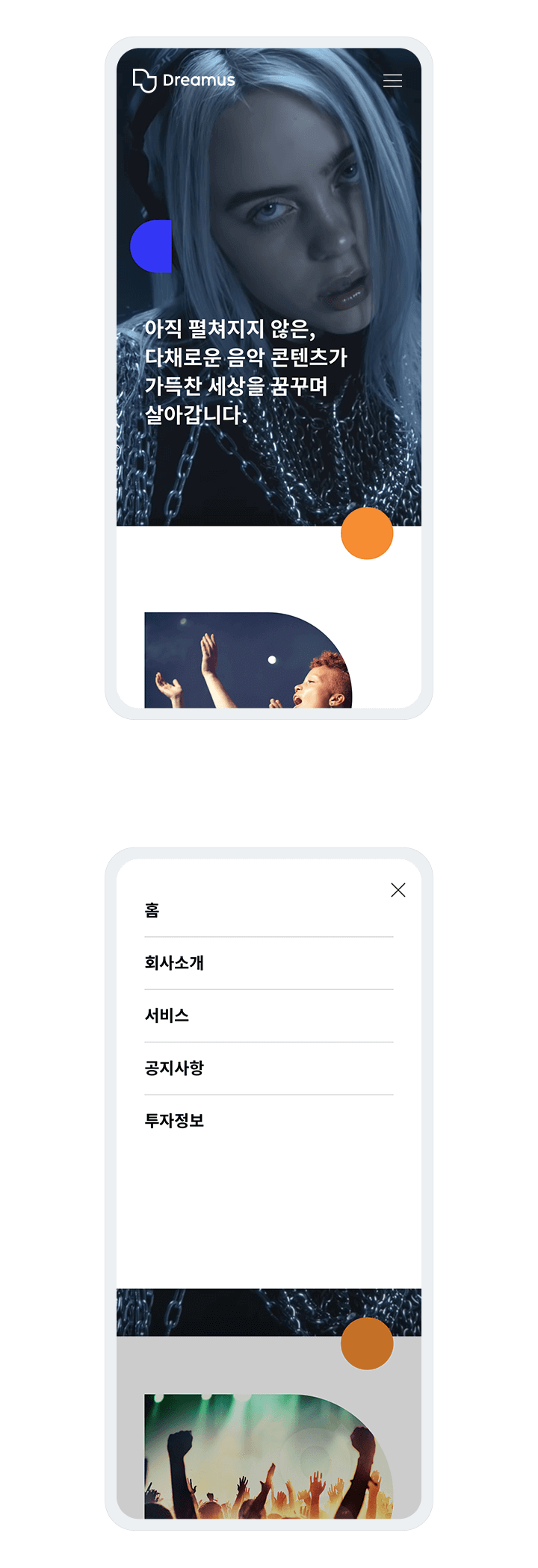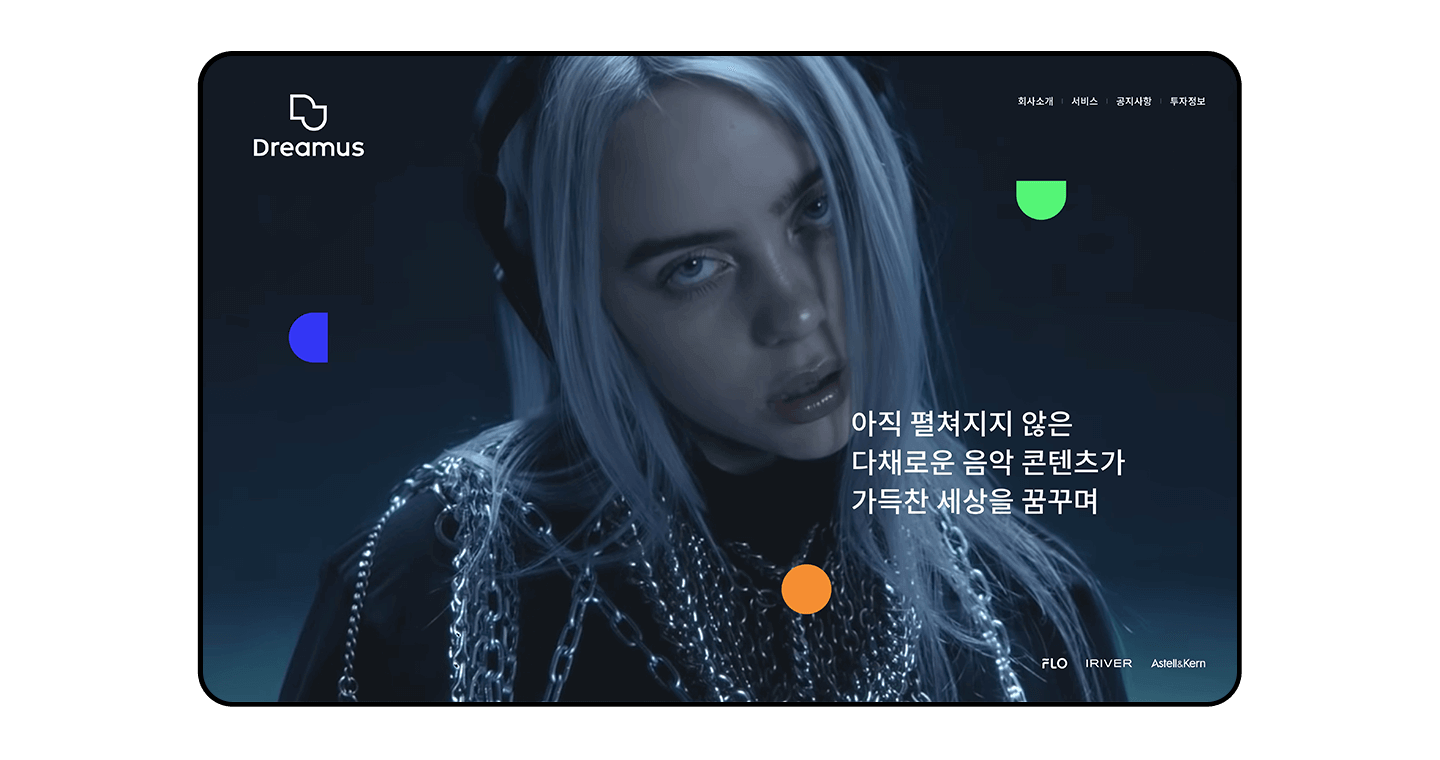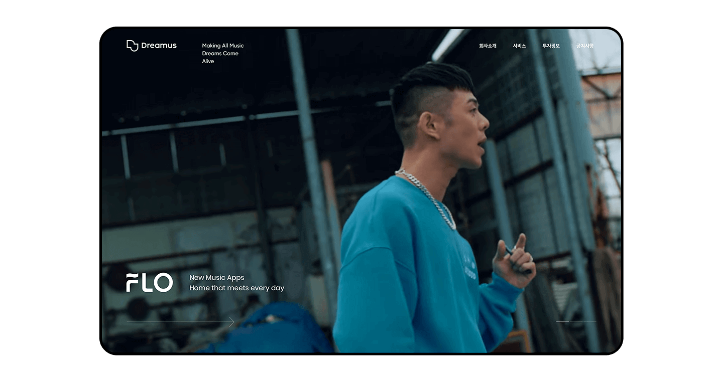 음악이 연상되는 영상을 사용하여 생동감 있는 첫인상을 표현하였습니다.